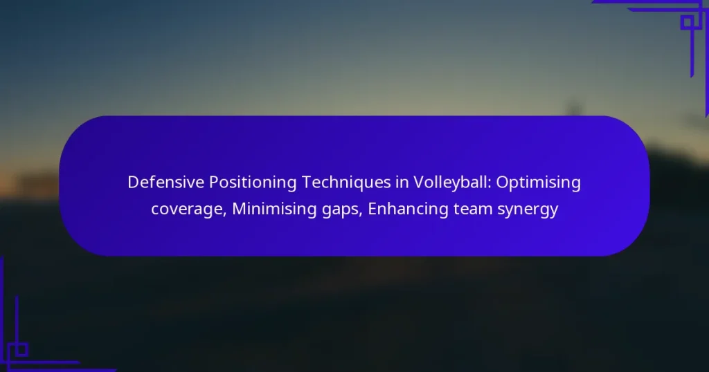 Defensive volleyball requires players to master essential positioning techniques to effectively cover the court and respond to opposing attacks. Key strategies include maintaining a low stance, aligning with teammates, and being prepared for quick movements. By focusing on drills, footwork, and communication, players can enhance their ability to anticipate and react during matches.