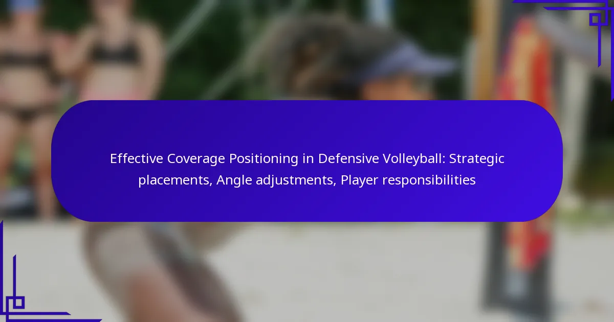 Effective coverage positioning in defensive volleyball is essential for maximising a team’s defensive capabilities. By focusing on strategic placements, angle adjustments, and clearly defined player responsibilities, teams can significantly improve their response to opponents’ attacks. Understanding these elements allows players to anticipate movements and optimise their defensive strategies on the court.