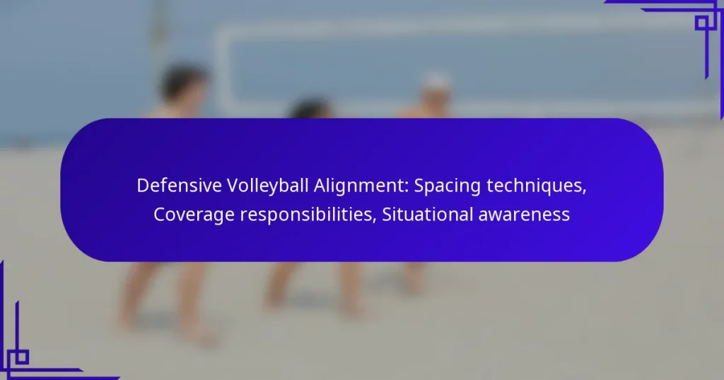 Defensive volleyball alignment is crucial for a team’s success, emphasising key spacing techniques that ensure players maintain optimal distances for effective coverage and communication. By understanding individual coverage responsibilities and enhancing situational awareness, players can anticipate movements and respond swiftly to opponent attacks, ultimately minimising scoring opportunities for the opposing team. Key sections in the article: Toggle What are the key spacing techniques in defensive volleyball alignment? Understanding optimal distances between players Adjusting spacing based on opponent formations Utilising court…