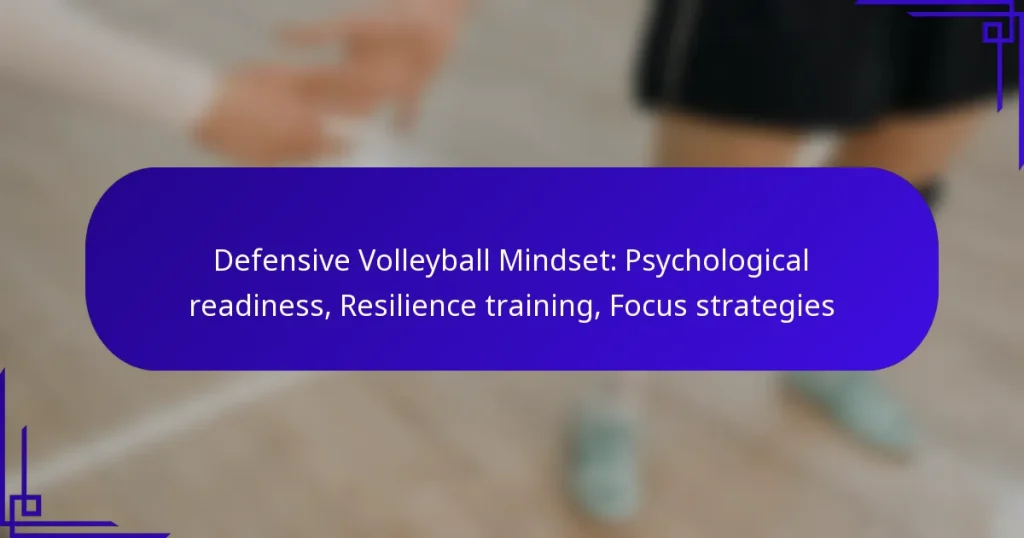 A defensive volleyball mindset is crucial for enhancing a player’s ability to perform under pressure. This approach integrates psychological readiness, resilience training, and focus strategies, all of which contribute to improved defensive capabilities on the court. By cultivating mental toughness and effective coping mechanisms, athletes can maintain their concentration and motivation, even in the face of challenges. Key sections in the article: Toggle What is a defensive volleyball mindset? Definition and importance of psychological readiness Key components of a defensive…