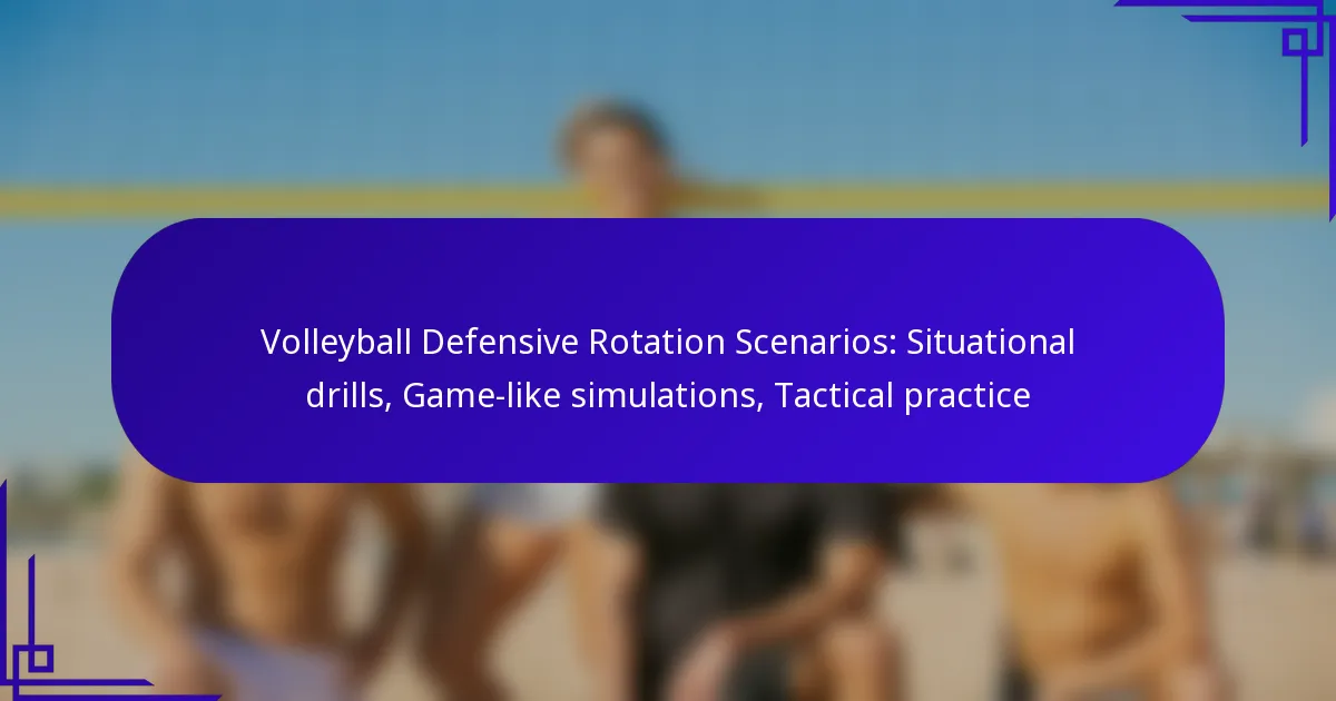Volleyball defensive rotation scenarios are essential for optimising player positioning and movement to effectively counteract opposing attacks. By engaging in situational drills and game-like simulations, teams can enhance their defensive strategies, improve communication, and refine coordination, ultimately leading to better performance during matches.
